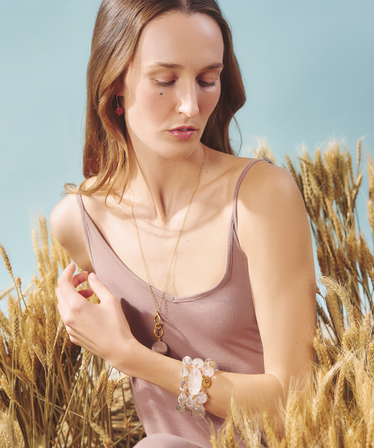 Our 24k gold-plated jewelry uses all-natural materials and needs special care to remain lustrous. It’s best to keep it away from the elements: salt, water, sweat, and prolonged exposure to high humidity, as well as chemical cleansers or perfumes. Remove before swimming and exercising. Put jewelry on only after makeup has set, and spray-on hair products or perfumes have been applied. Buff with a microfiber cloth and store in a cool, dry place like a pouch or jewelry box to prevent fading. Overcleaning will cause tarnishing.